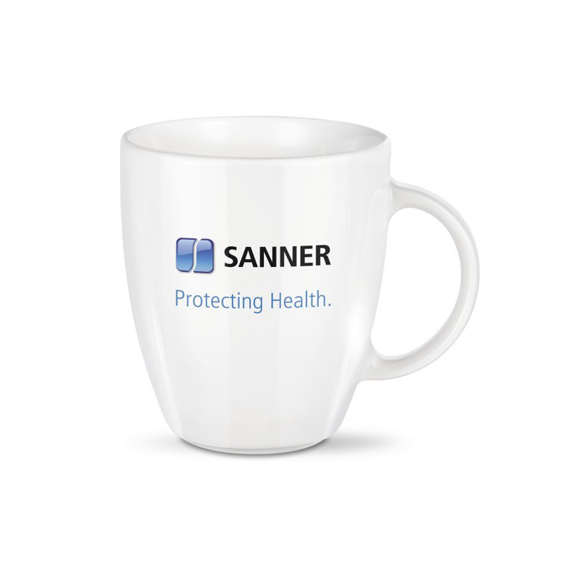 Maxim Kaffeebecher weiß hochglänzend inkl. Aufdruck